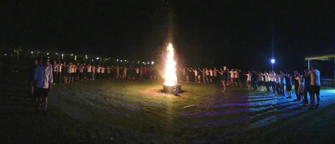 伴著皎潔的月光,美豐家人們開始了篝火晚會,大家手拉著手,圍著熊熊火焰盡情的舞蹈歡唱,在歡笑聲中結(jié)束了一天的團隊活動。